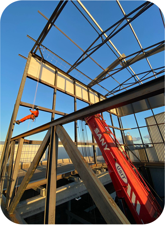 Com o uso de técnicas de acesso por corda, é possível alcançar pontos elevados e áreas de acesso restrito sem a necessidade de equipamentos volumosos. A equipe realiza o posicionamento correto das peças, estabilização da carga, condução controlada do movimento e acompanhamento de toda a manobra para assegurar que cada etapa ocorra de forma segura e alinhada às exigências operacionais.